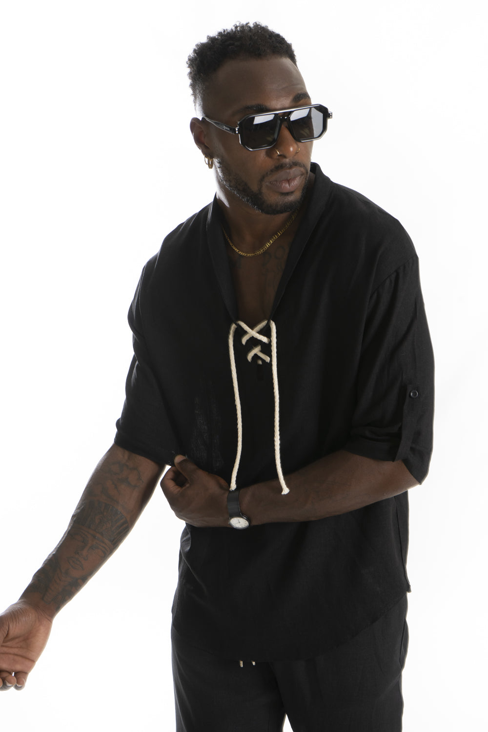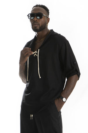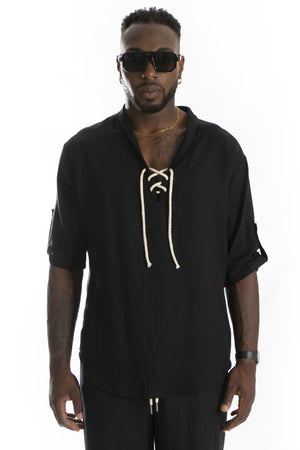 -Esplora la nostra camicia 100% lino con scollo a V e lacci regolabili. Con maniche corte e realizzata interamente in lino qualità, questa camicia offre freschezza e comfort ideali per le giornate estive. Un design elegante e versatile che aggiunge un tocco di raffinatezza al tuo guardaroba.
