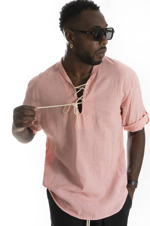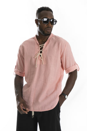 -Esplora la nostra camicia 100% lino con scollo a V e lacci regolabili. Con maniche corte e realizzata interamente in lino qualità, questa camicia offre freschezza e comfort ideali per le giornate estive. Un design elegante e versatile che aggiunge un tocco di raffinatezza al tuo guardaroba.