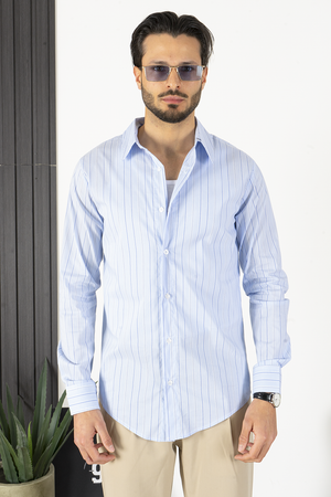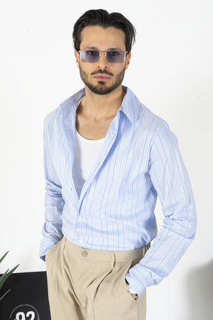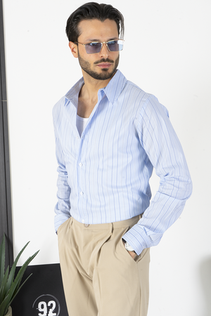 -Scopri la nostra camicia con fantasia rigata sottile e collo italiano, un'eccellenza del Made in Italy. Realizzata con cura e attenzione ai dettagli, questa camicia offre un look elegante e raffinato, perfetto per ogni occasione. Aggiungi un tocco di stile italiano al tuo guardaroba con questa camicia di alta qualità.