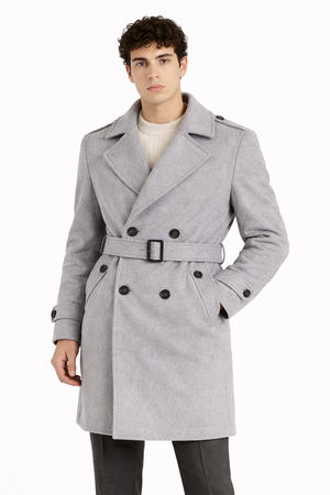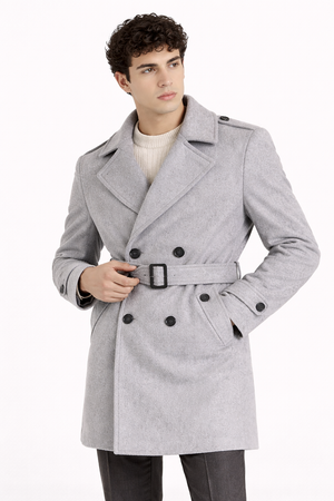 Questo cappotto uomo doppiopetto con cintura è il capo ideale per chi cerca uno stile elegante ma contemporaneo.