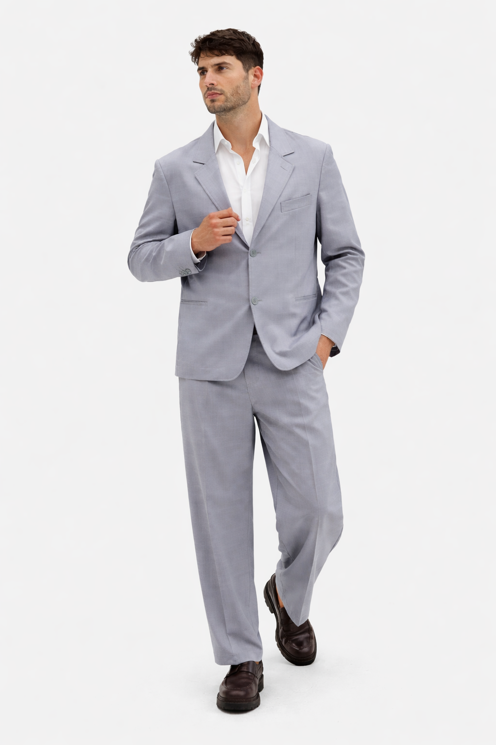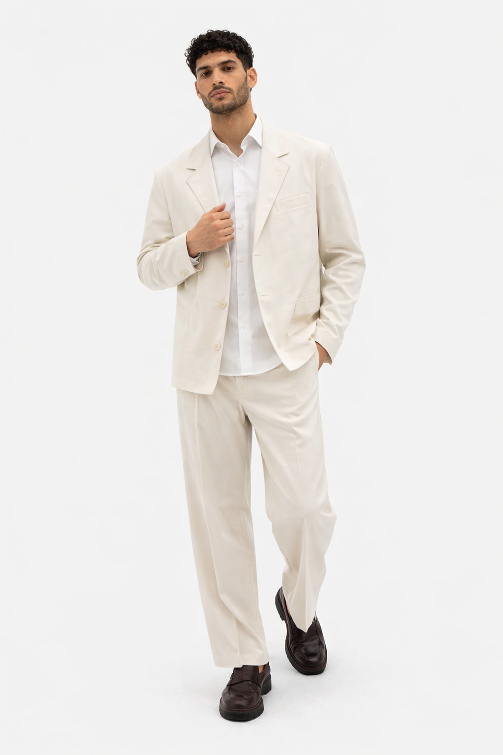 Pantalone: Taglio dritto e rilassato con piega centrale stirata, ideale da abbinare a mocassini o sneaker premium.