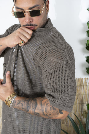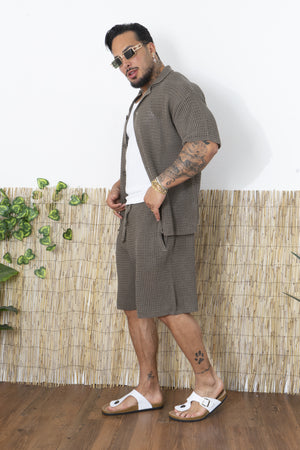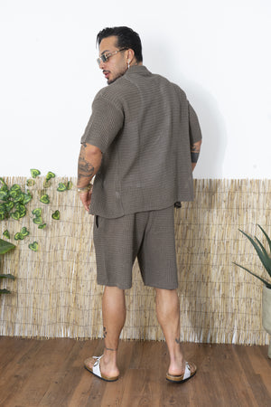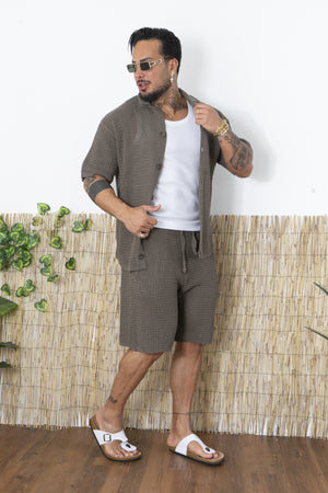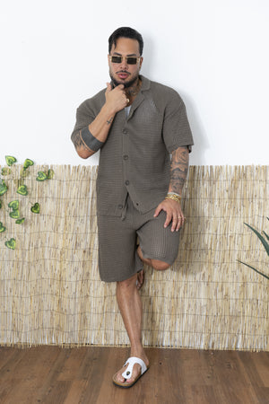 -Porta lo stile estivo a un altro livello con questo completo traforato da uomo, composto da camicia a maniche corte e pantaloncini coordinati. Realizzato in una maglia lavorata traforata, questo set è perfetto per chi cerca un look fresco, moderno e rilassato, senza rinunciare al comfort.