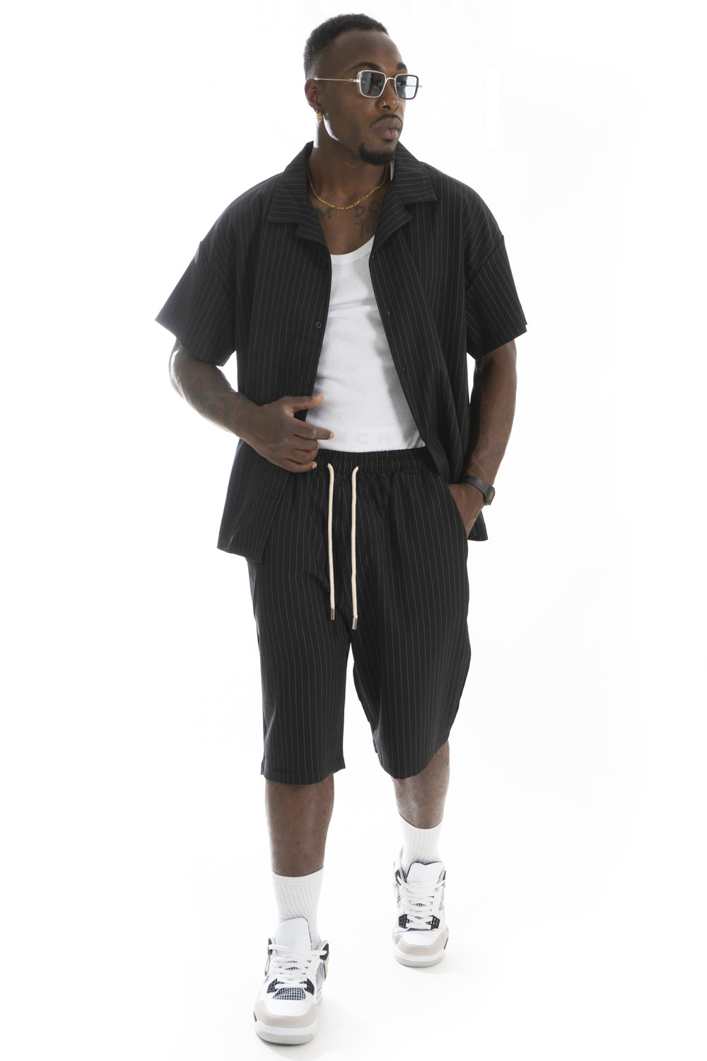 Coordinato Gessato Corto Camicia e bermuda Art. Cd58