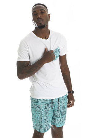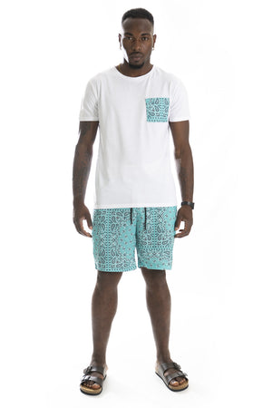 -Dettagli: Bermuda con fantasia, t-shirt con taschino abbinato