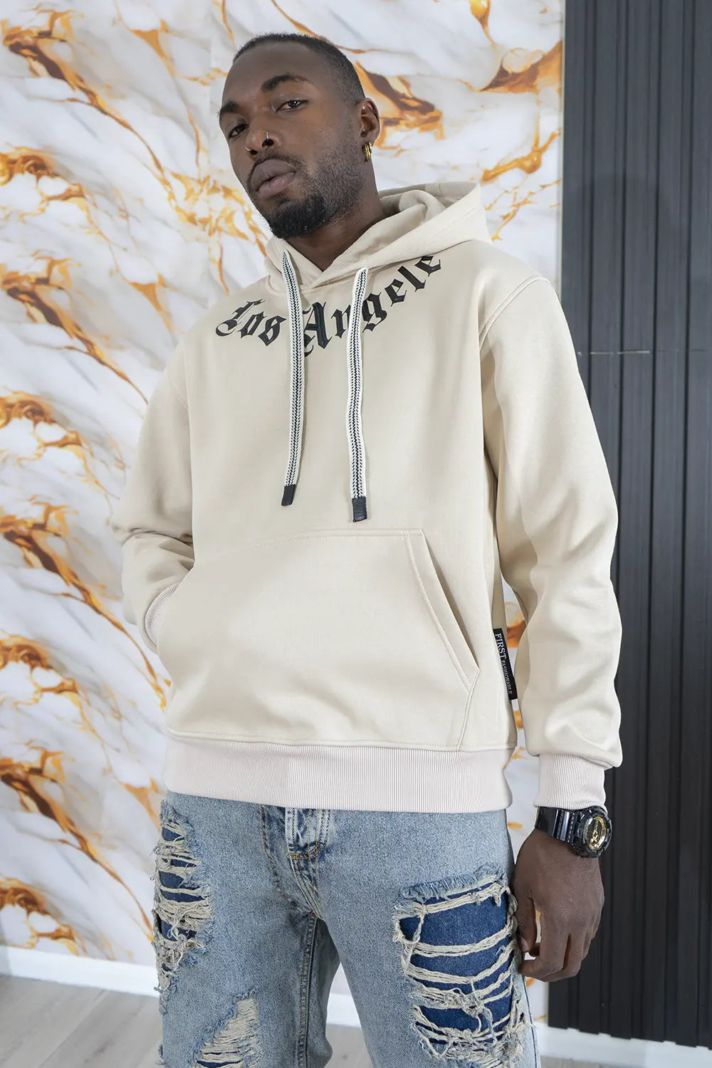 -Dettagli: La nostra felpa è il perfetto equilibrio tra comfort e stile. Dotata di un cappuccio con coulisse larga per una vestibilità regolabile, questa felpa presenta un tascone a marsupio per un tocco pratico e casual. La vera protagonista è la stampa in 3D in rilievo, che decora il collo e il lato posteriore, donando un effetto visivo unico e moderno. Realizzata con materiali morbidi e resistenti, è ideale per un look urbano e di tendenza, perfetta per ogni occasione casual. Un capo che unisce funzionalità e design innovativo, rendendo ogni outfit più interessante.