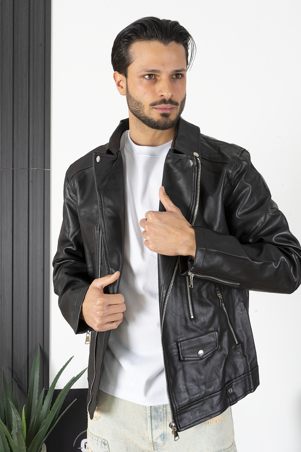 Giubbotto Giacca Uomo Ecopelle Bikers Chiodo Art. Gb07