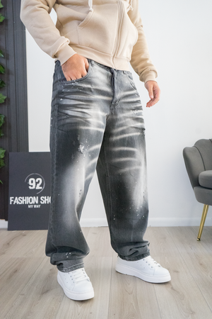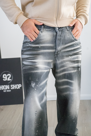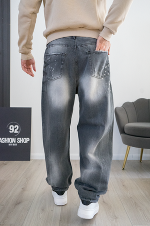-Jeans uomo modello baggy fit oversize in denim grigio scuro effetto lavato.