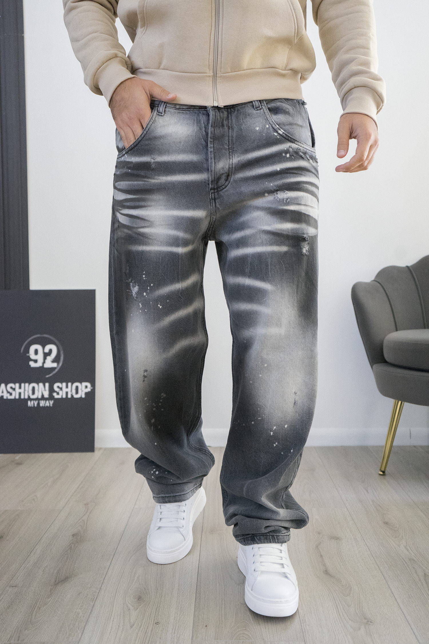 Caratterizzato da abrasione leggere, sfumature scolorite e micro schizzi effetto vernice, è il capo perfetto per chi ama lo stile street e urbano.