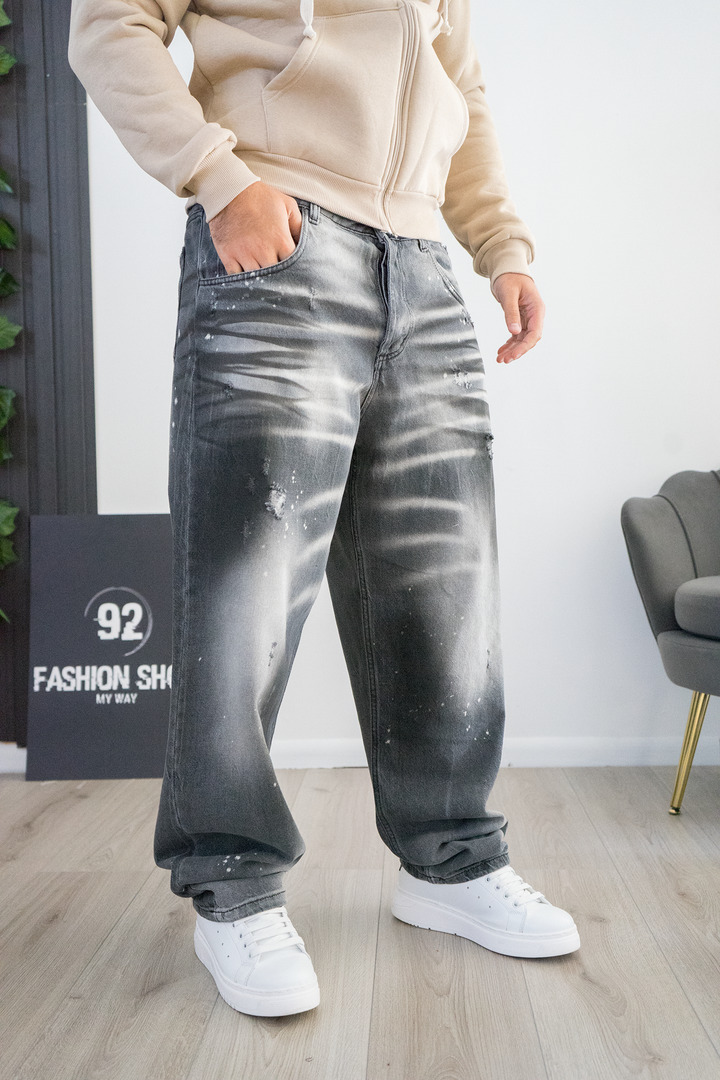 -Jeans uomo modello baggy fit oversize in denim grigio scuro effetto washed.