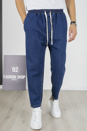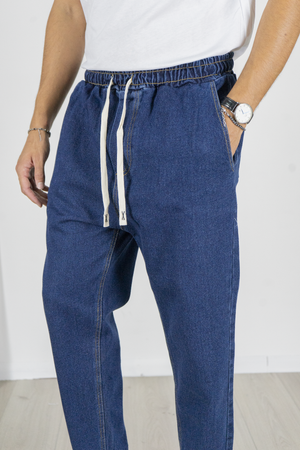 -Pantalone jogger uomo in denim Blu, caratterizzato da vita elastica con coulisse a contrasto e vestibilità comoda. Un modello che unisce lo stile casual del denim alla praticità dello jogger, ideale per look streetwear moderni e versatili. Perfetto da abbinare a sneakers bianche o mocassini per outfit di tendenza.