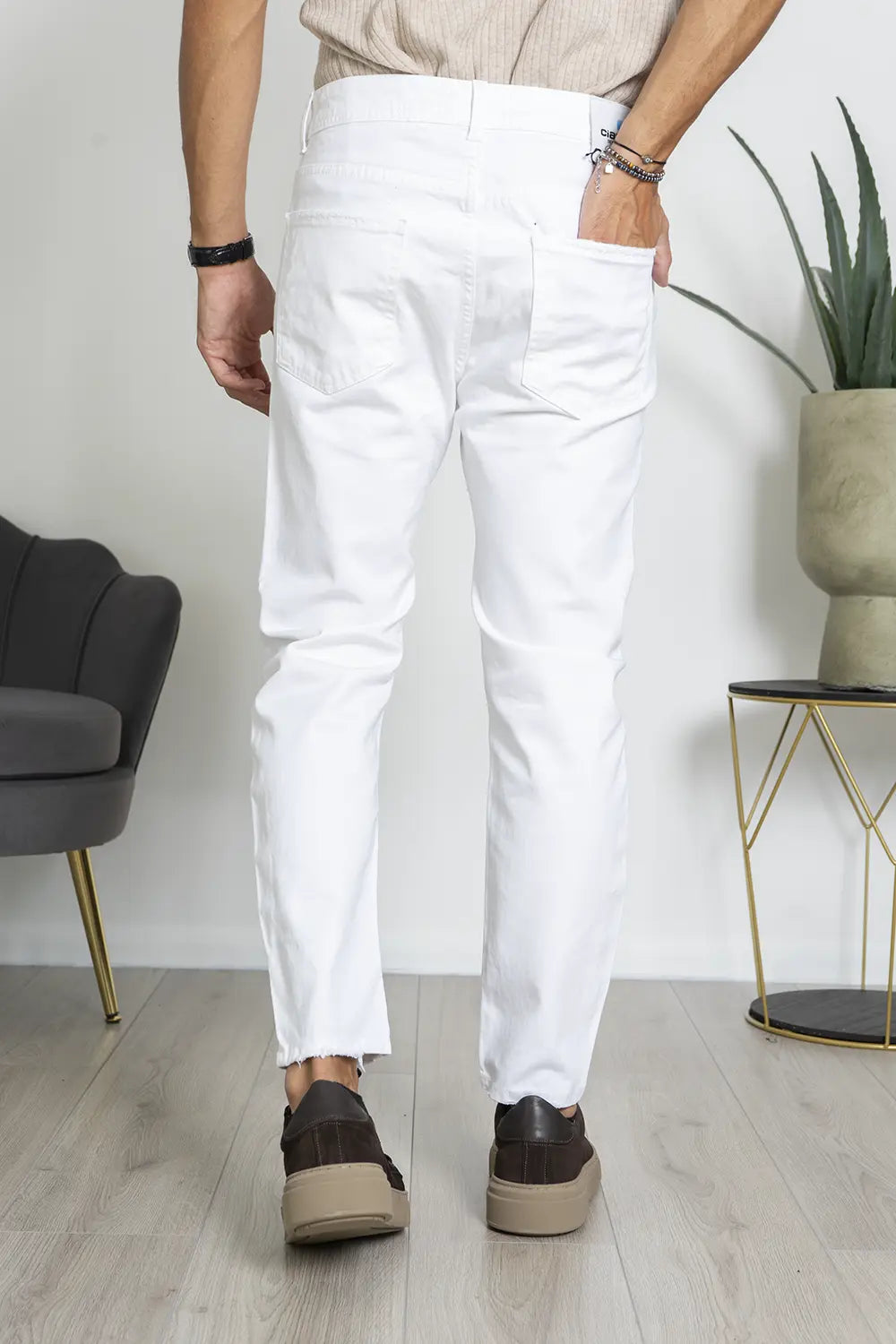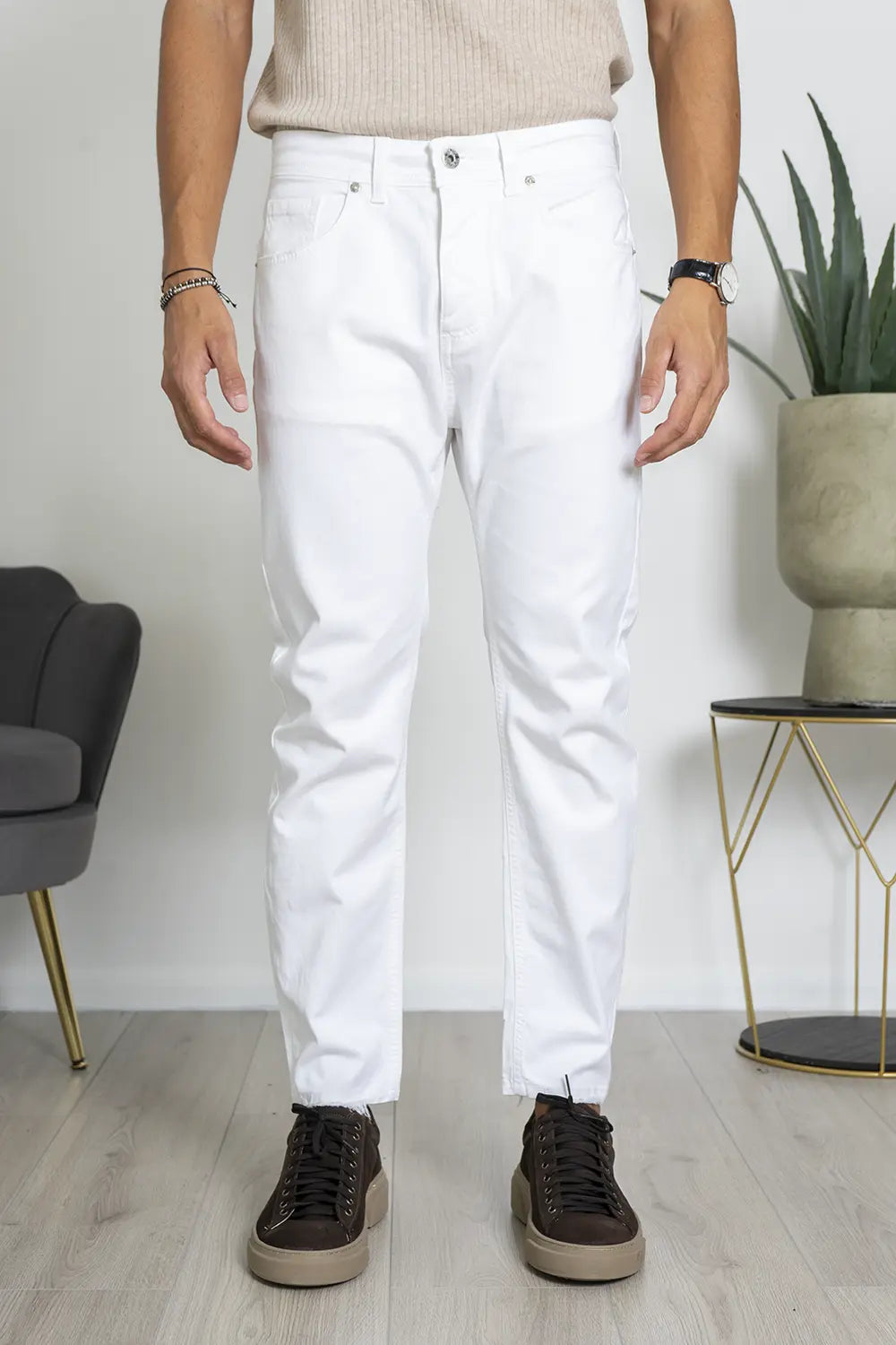 -Questi pantaloni slim fit sono l'ideale per chi cerca uno stile versatile che unisce eleganza e comfort. Realizzati in cotone elasticizzato di alta qualità, garantiscono una vestibilità aderente ma confortevole, perfetti per essere indossati sia in occasioni casual che più formali.