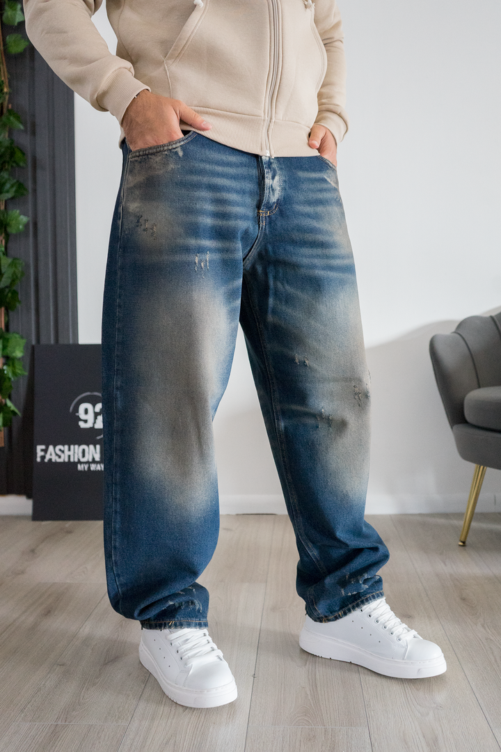 Jeans Uomo Oversize Baggy Fit Blu Effetto Washed Art. js553