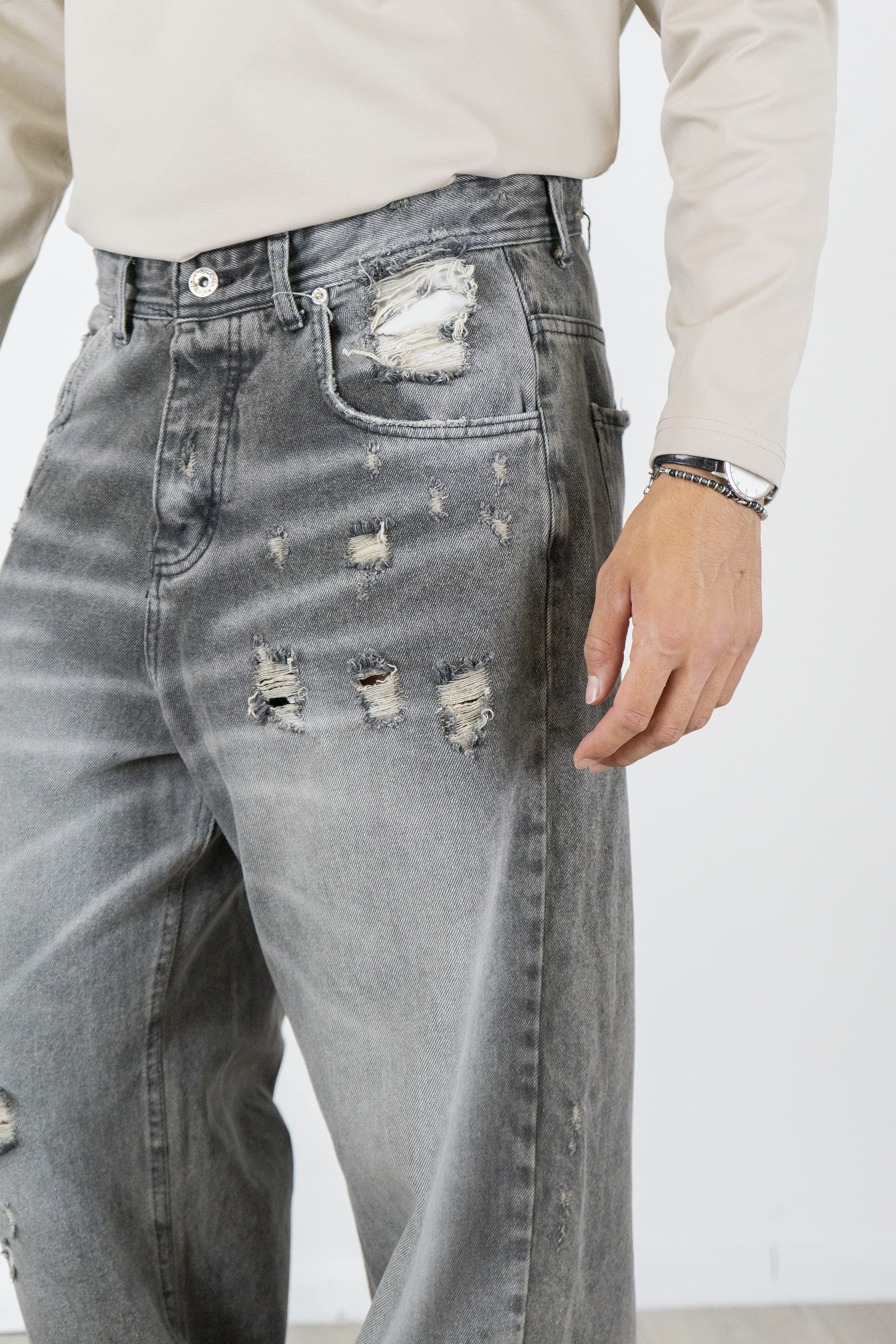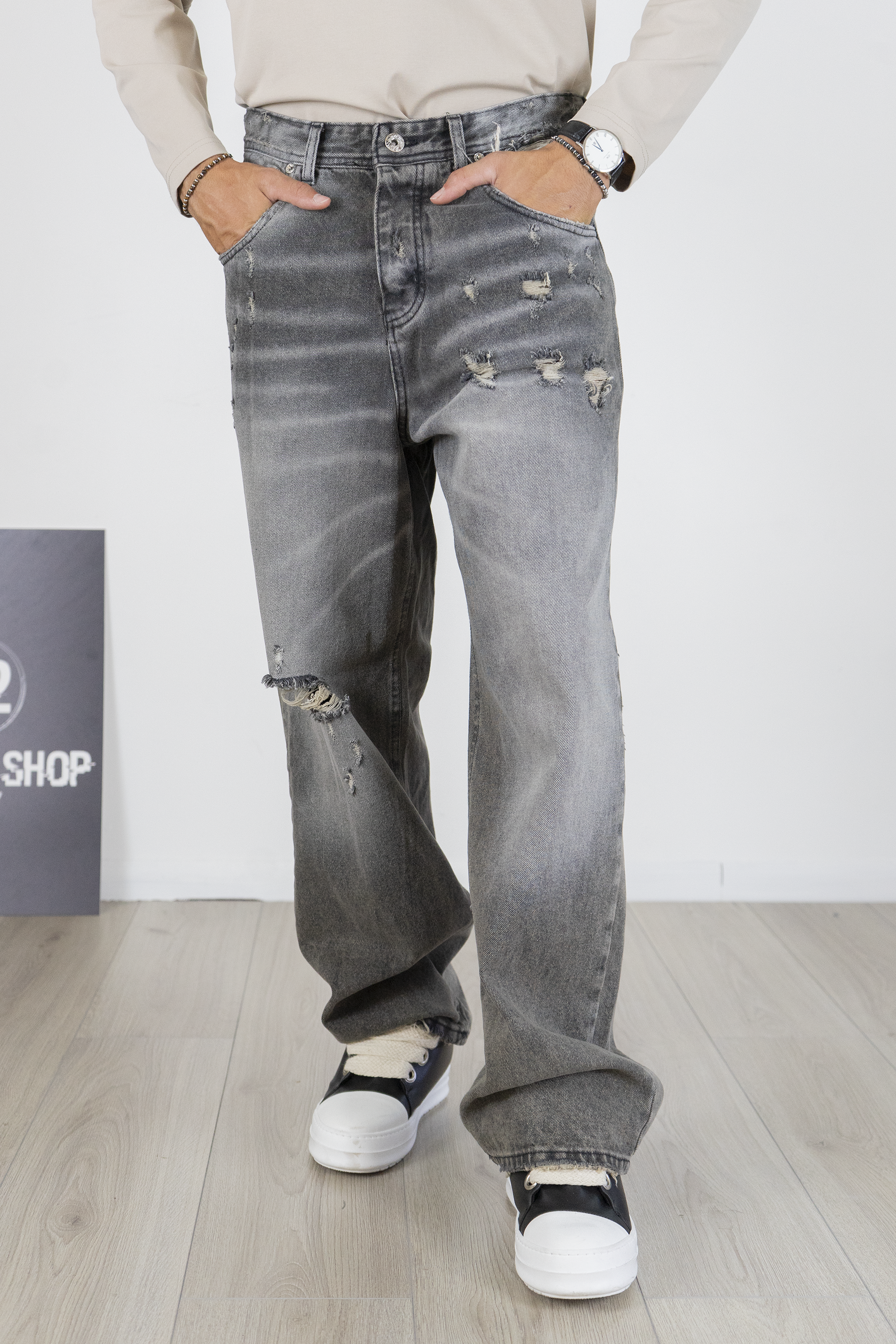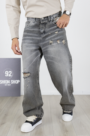 Jeans Uomo Baggy Grigio con Strappi Cianotic Art. JS547