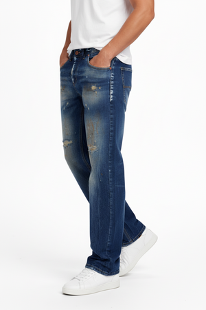 Jeans Straight Fit "Deep Indigo Painter" con Dettagli Artigianali Art. Js562