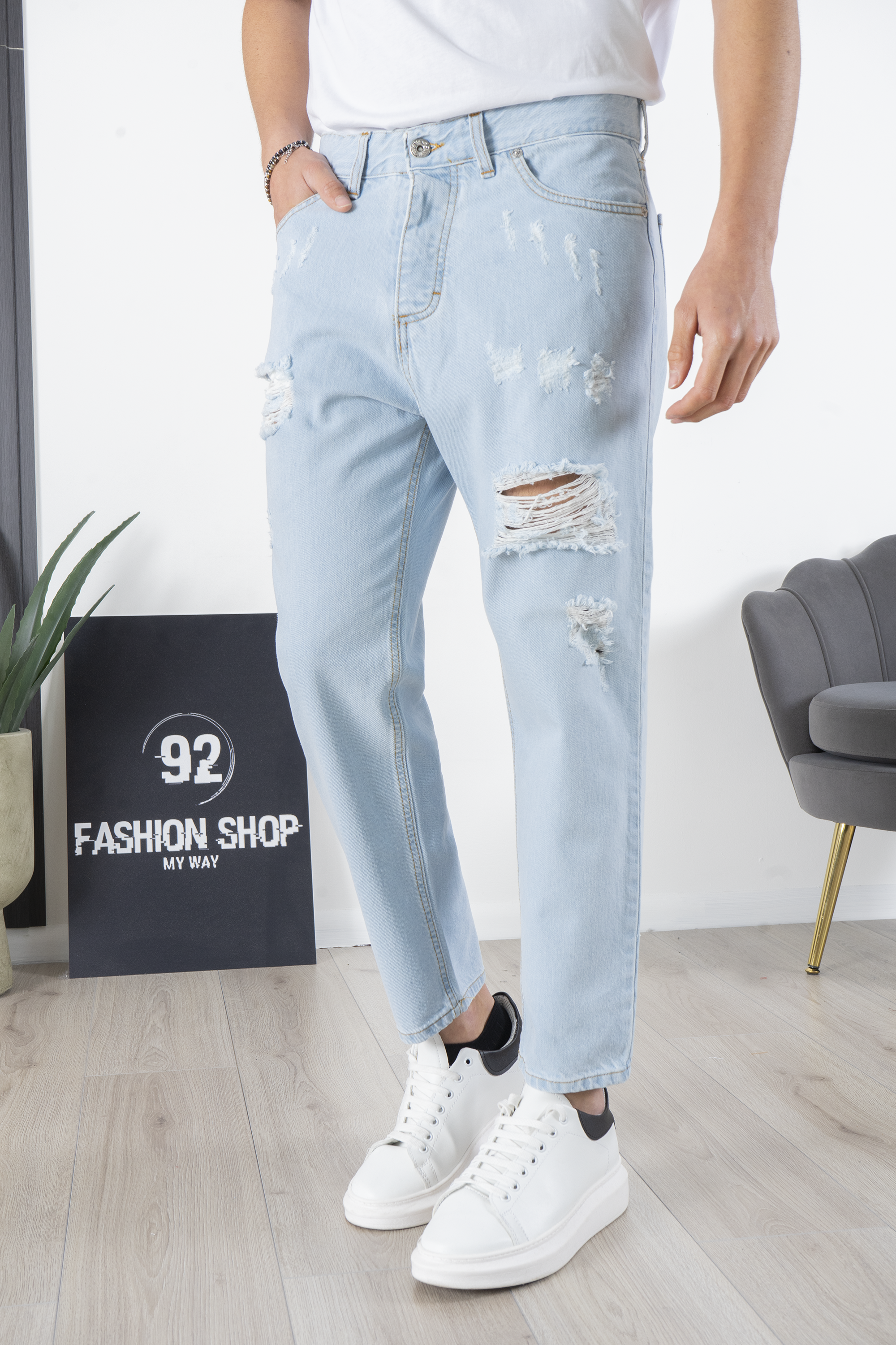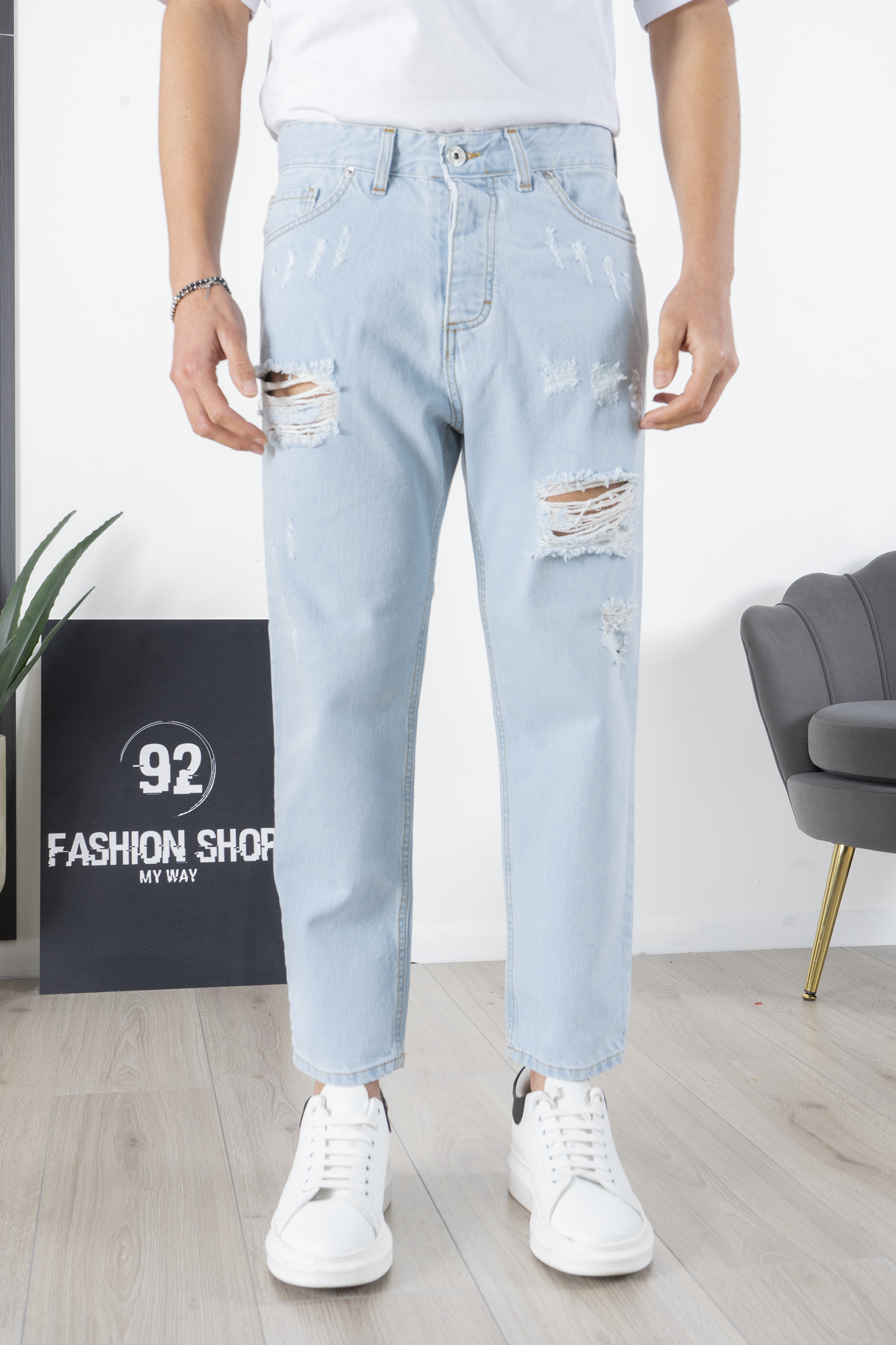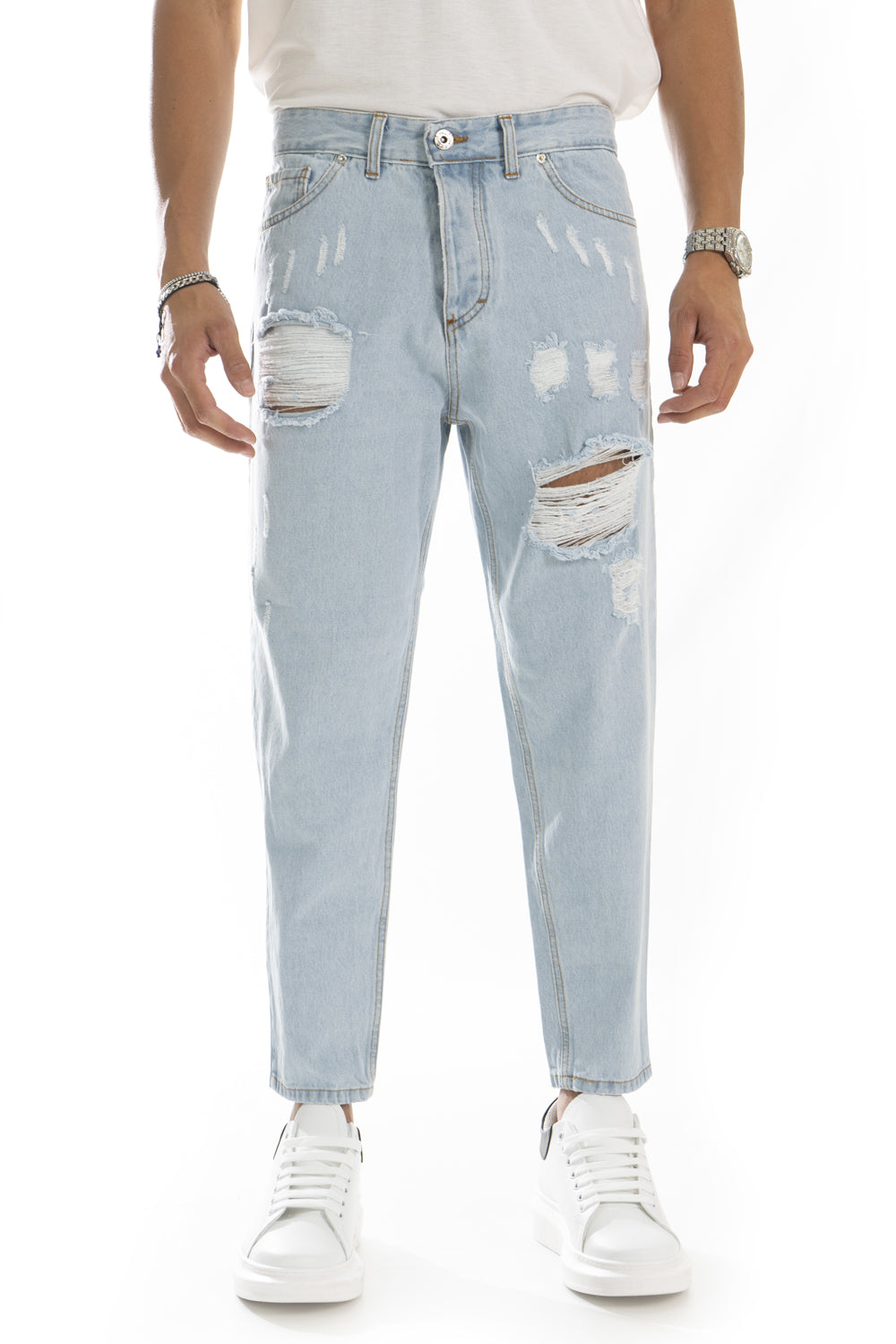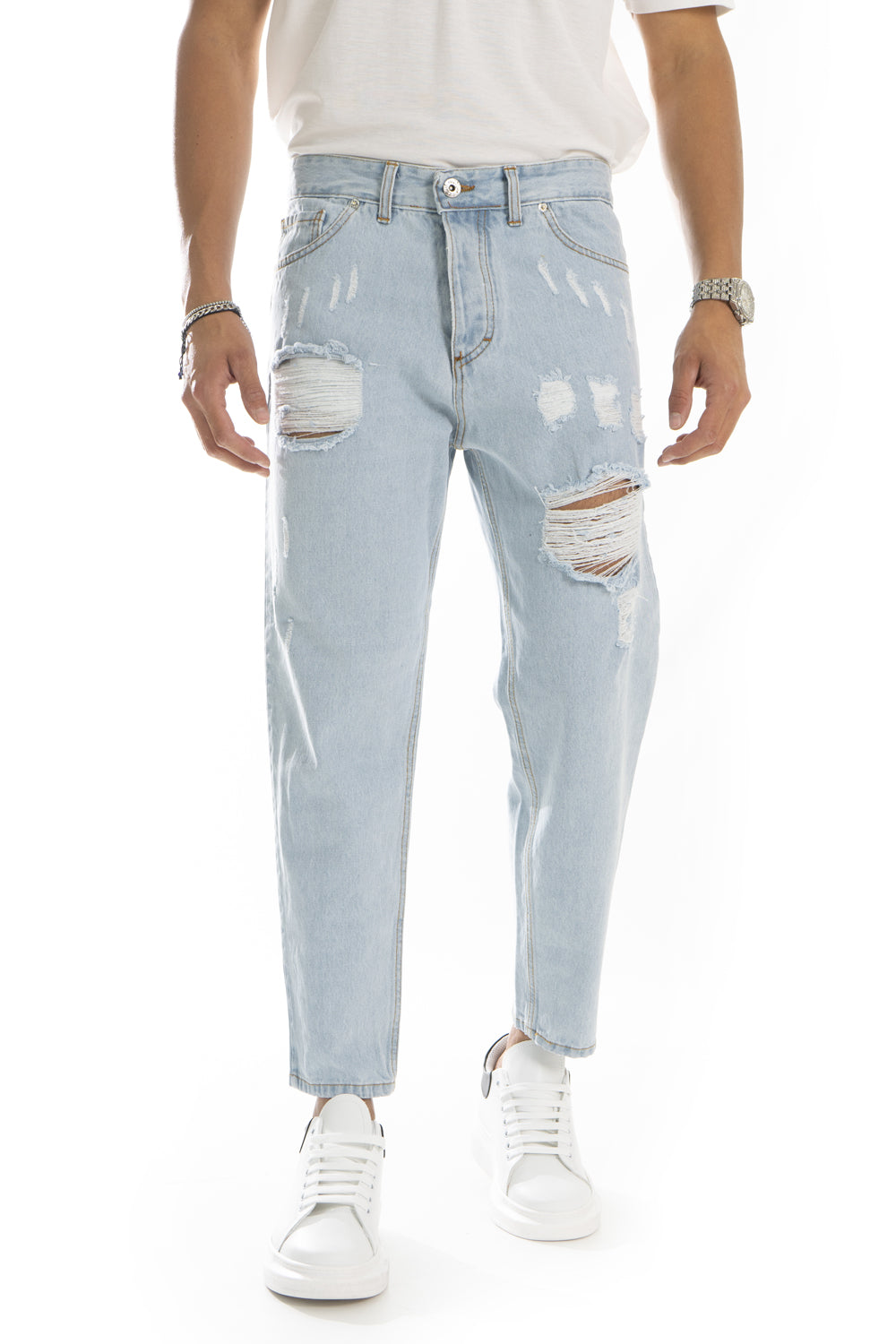 Jeans Uomo Con Strappi e Abrasioni Chiaro Art. Js203