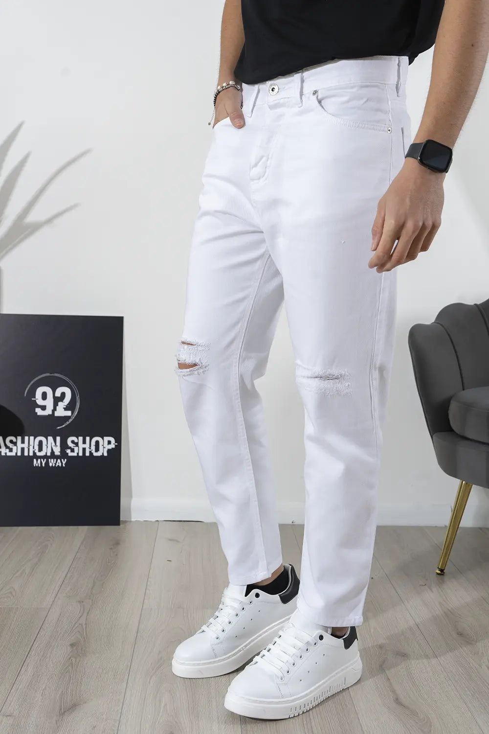 Jeans Uomo Strappi Ginocchia Tinta Unita By 92 Fashion Shop Art. Js273