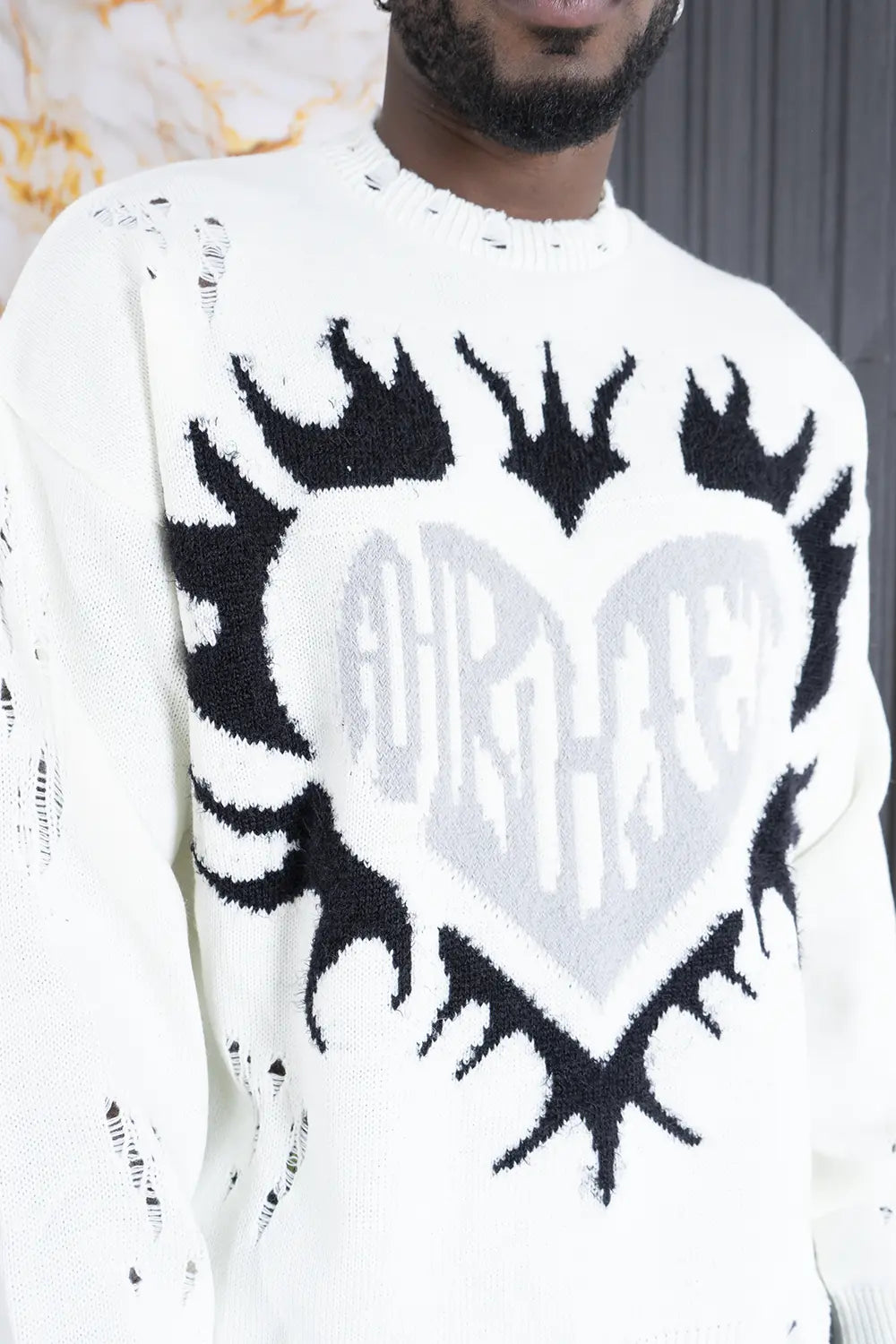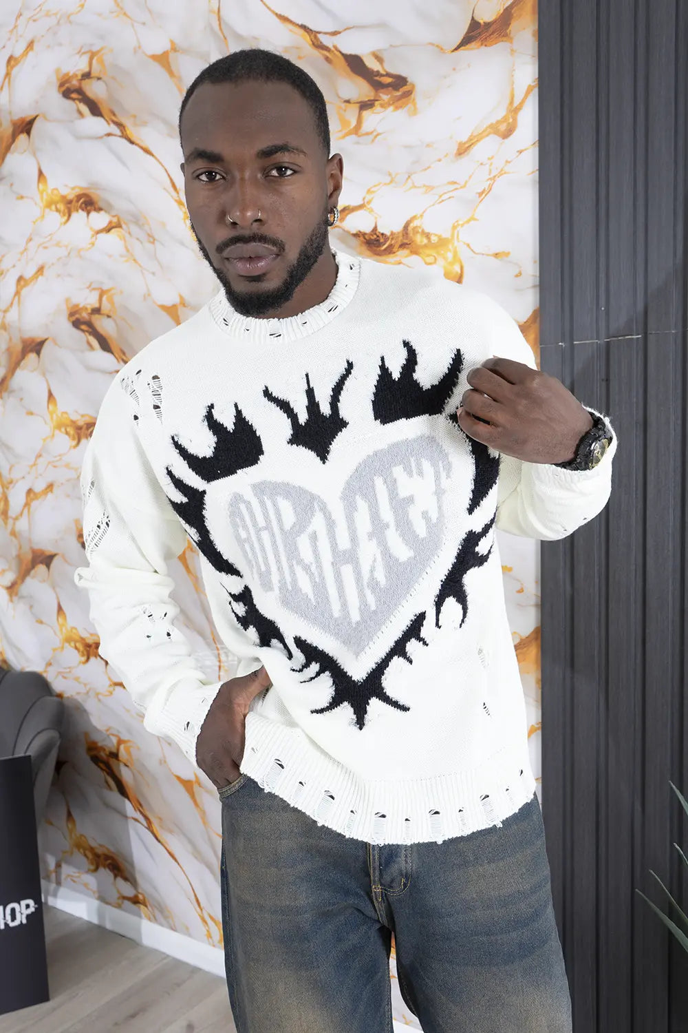 -Dettagli: Porta un tocco di originalità al tuo stile con il maglione con stampa in pelo a forma di cuore e dettagli distrutti. Realizzato con tessuti morbidi e caldi, questo maglione si distingue per la sua stampa in rilievo a forma di cuore, realizzato in pelo sintetico, che aggiunge un dettaglio romantico e sofisticato. Le rotture strategiche lungo il tessuto donano al capo un look moderno e grintoso, perfetto per chi ama uno stile casual e di tendenza. Ideale per le giornate fredde, abbinalo a jeans o pantaloni oversize per creare outfit contemporanei e di carattere. Questo maglione caldo con dettagli distrutti è la scelta perfetta per chi cerca comfort, stile e un tocco di ribellione.