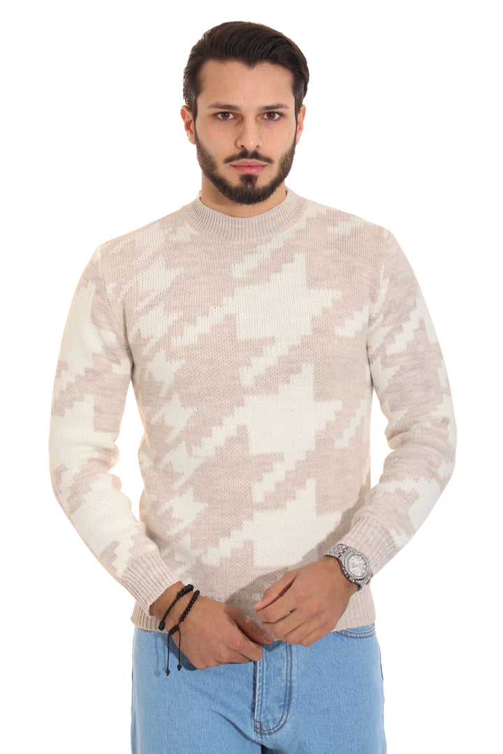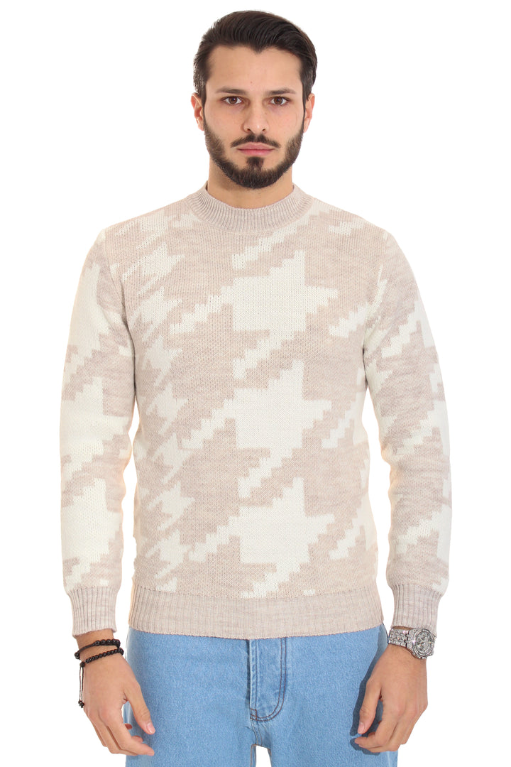 -Descrizione: Il Maglione Presenta una fantasia Bicolore , elastico in vita