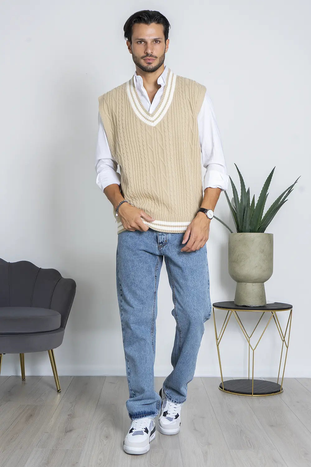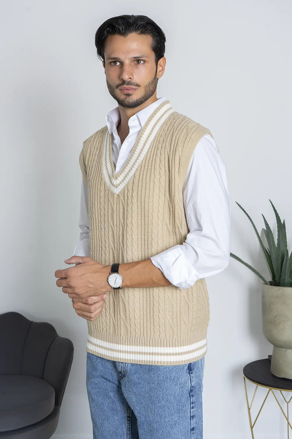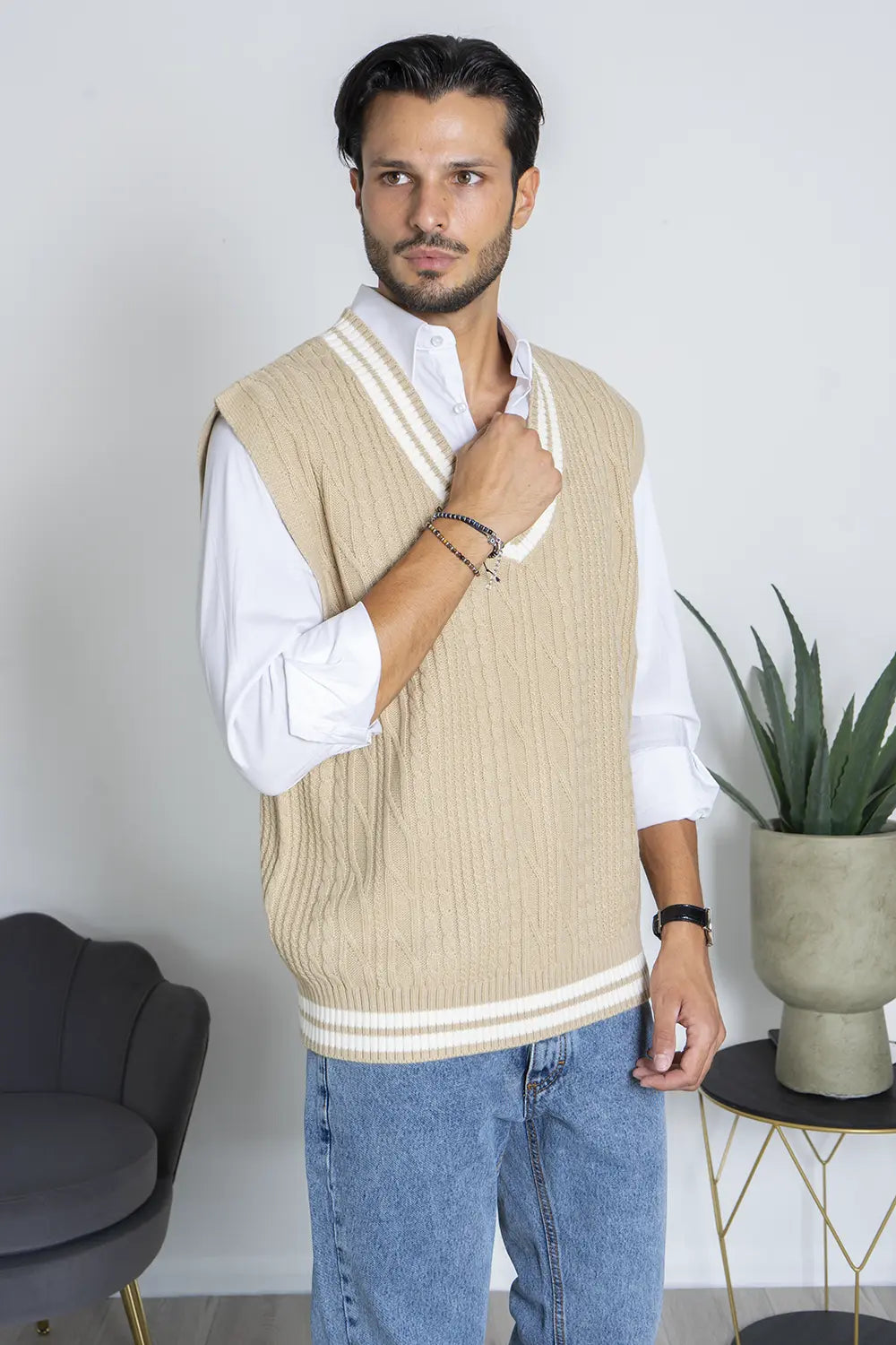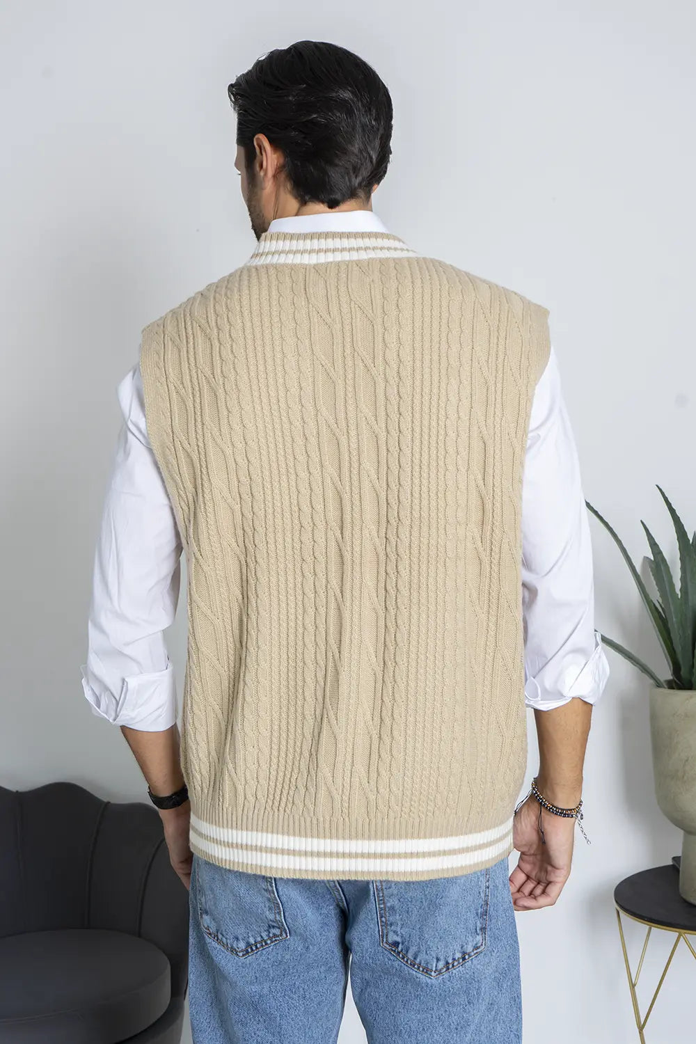 -Dettagli: Maglione smanicato con scollo a V e fantasia a trecce, perfetto per la stagione invernale. Ideale da indossare sopra una camicia o camicia, è un capo versatile che si adatta ad ogni outfit, aggiungendo un tocco di stile e calore al tuo guardaroba invernale.