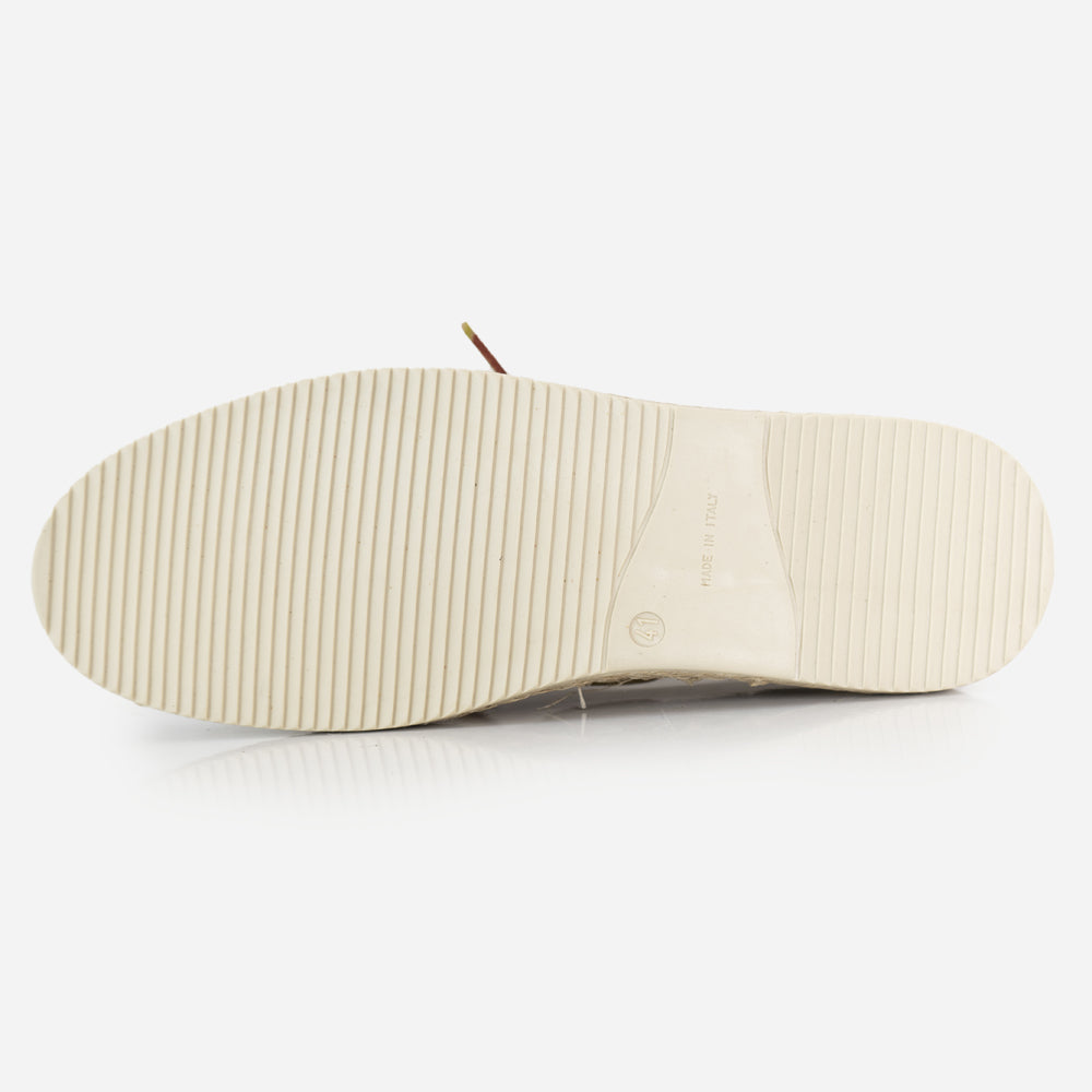 Ciò che rende questo mocassino davvero speciale è il fondo in corda. La corda è un materiale naturale, leggero e resistente, perfetto per la tenuta. Il fondo in corda non solo conferisce alle scarpe un tocco di originalità, ma offre anche un'ammortizzazione aggiuntiva, garantendo un comfort duraturo per tutto il giorno.