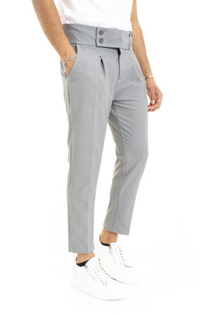 Pantalone Vita Alta Doppio Bottone Con Pinces Tasca America Art. Pt64