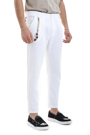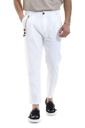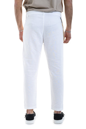 Pantalone In Lino Con Bottone Accessorio Laterale Tasca America Art. Pt48