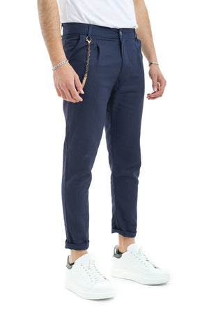 Pantalone In Lino Con Bottone Accessorio Laterale Tasca America Art. Pt48