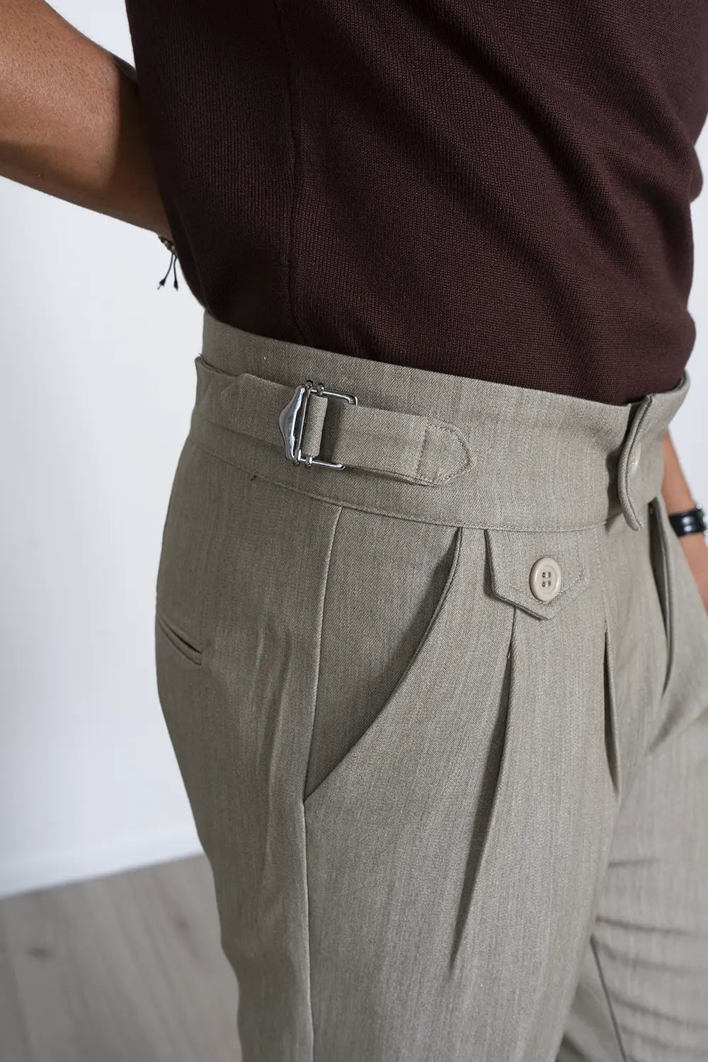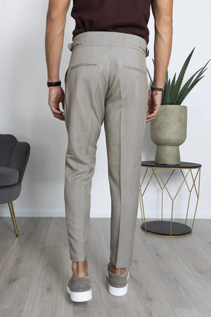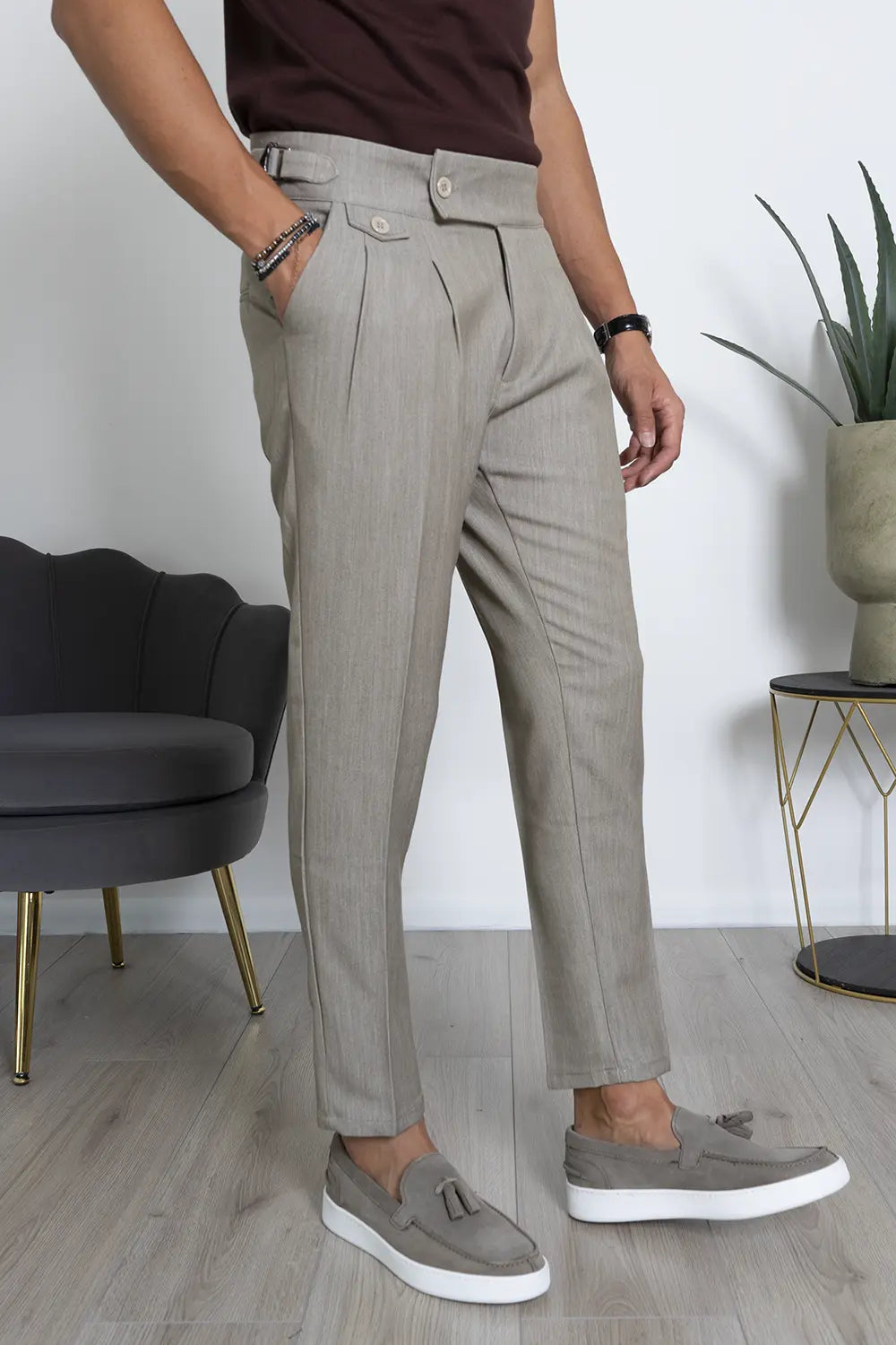 -Scopri l'eleganza senza tempo con il nostro pantalone caratterizzato da un bottone decentrato e pinces, arricchito da fibbie laterali. Questo capo versatile è adatto sia per la collezione autunno/inverno che per quella primavera/estate, e viene fabbricato in entrambe le stagioni con tessuti del momento. Offrendoti stile e comfort in ogni stagione, aggiungi un tocco di raffinatezza al tuo guardaroba con questo capo essenziale, realizzato con cura per soddisfare le tue esigenze di moda durante tutto l'anno.