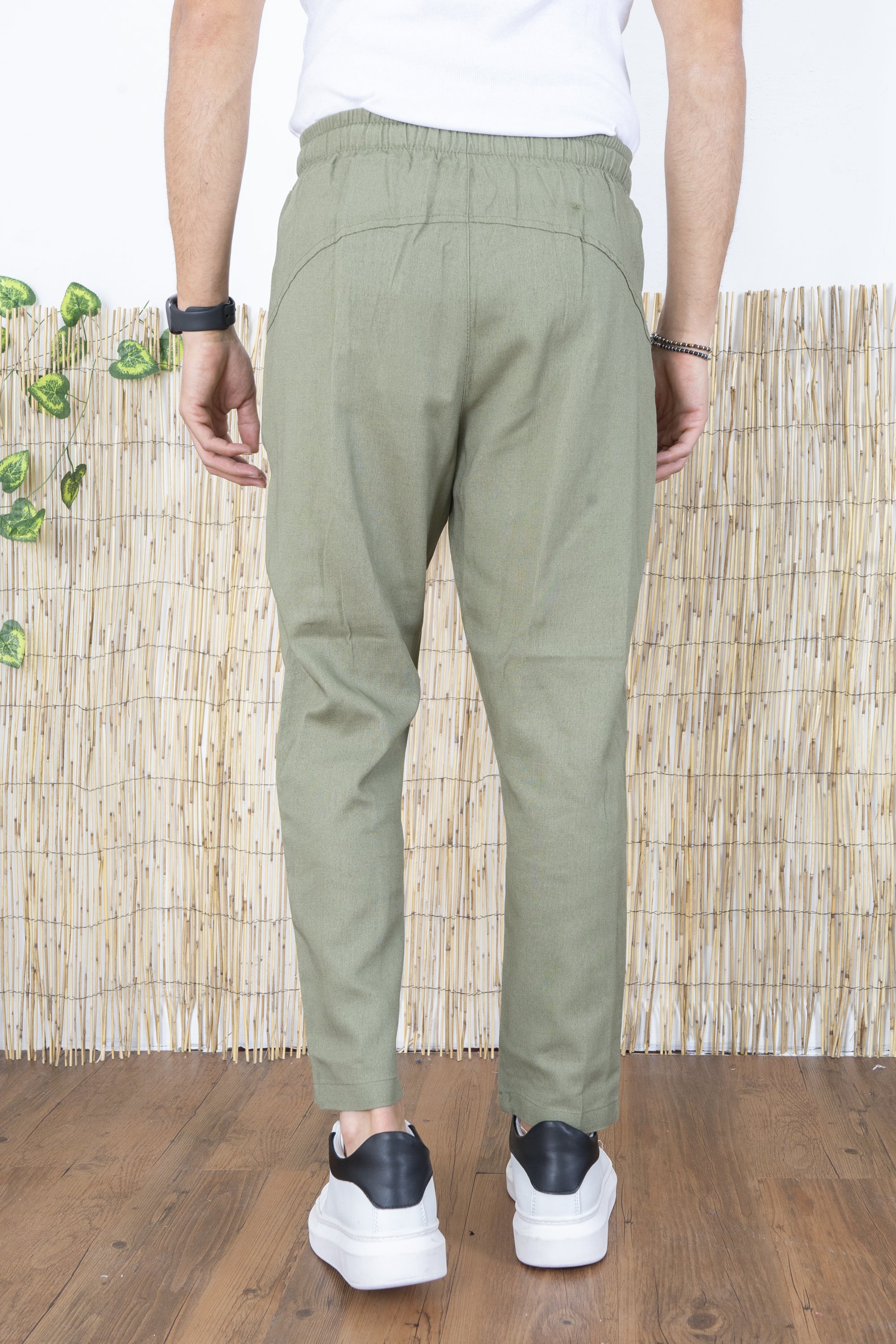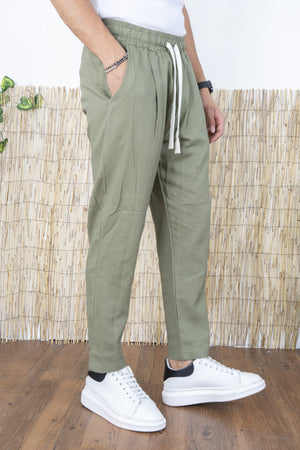 Pantalone Uomo In Lino Tinta Unita Tasca America Art. Pt45