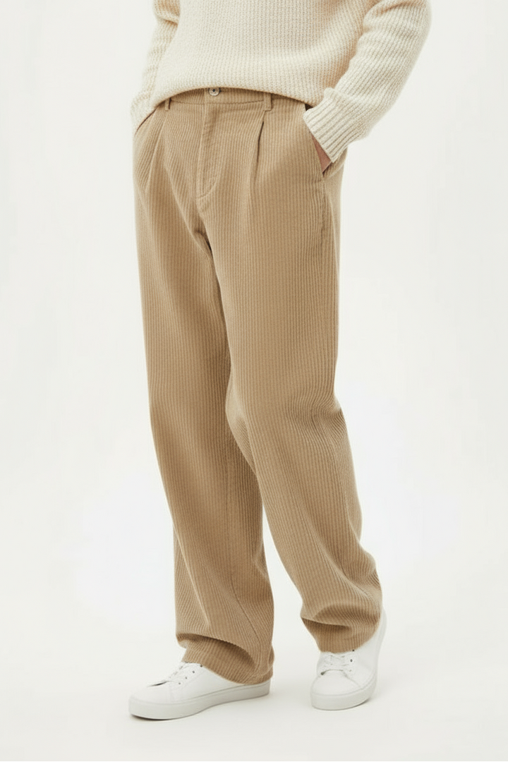 Pantalone uomo in velluto a coste con fit dritto e morbido, perfetto per uno stile casual sofisticato.