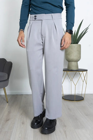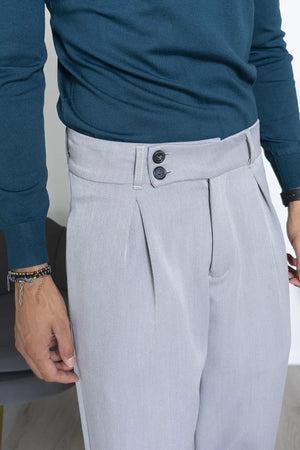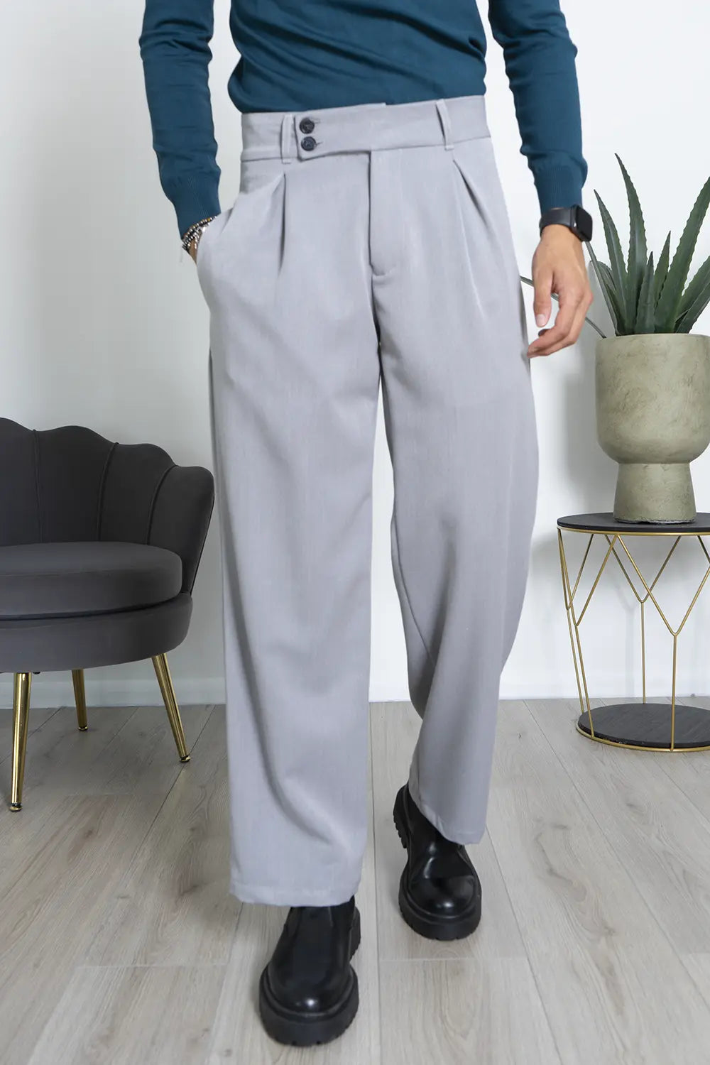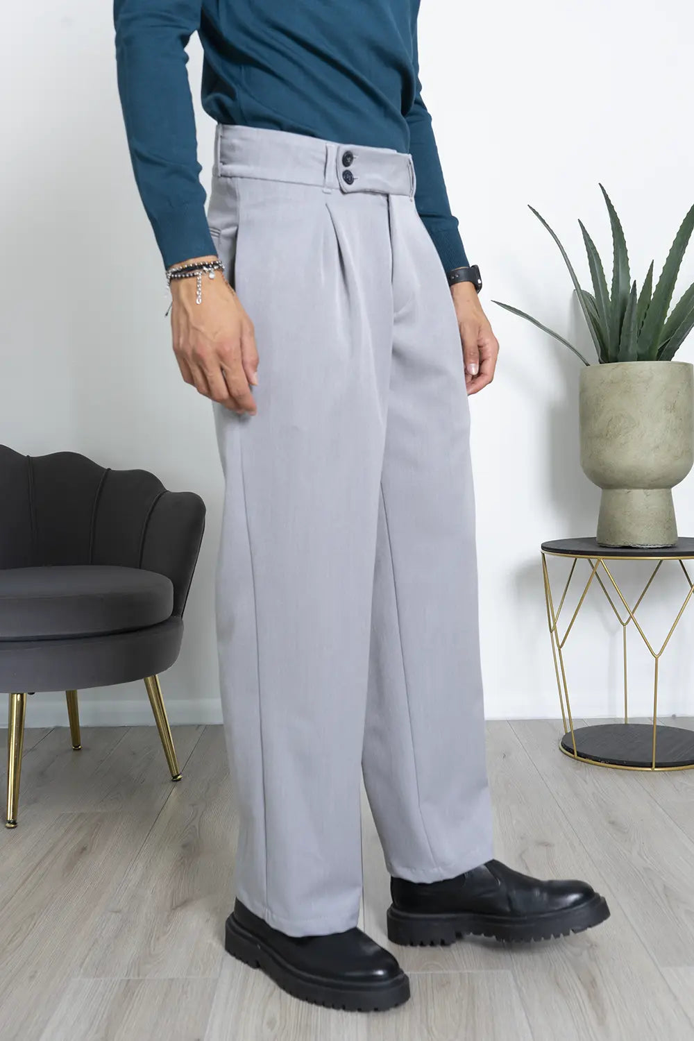 -Dettagli: Il pantalone è caratterizzato da una vita alta con doppio bottone e gamba larga. Il design con Vita alta e il taglio ampio offrono comodità e versatilità, mentre il tessuto morbido e fluido si adatta a vari tipi di fisico. Questo pantalone può essere indossato sia in contesti casual che formali, risultando sempre elegante e confortevole.