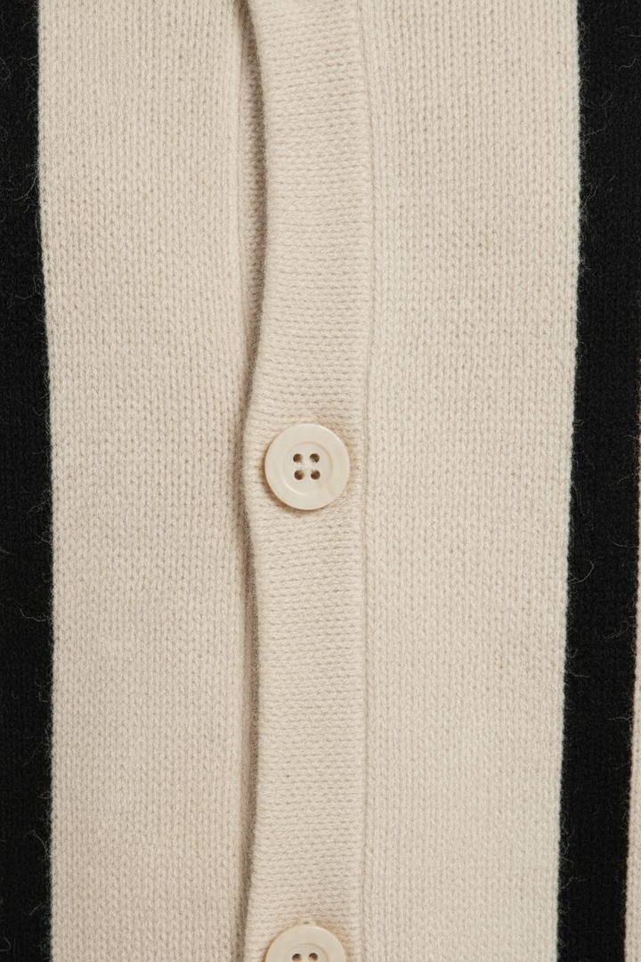 -Cardigan uomo in maglia morbida con motivo a righe verticali e orizzontali .