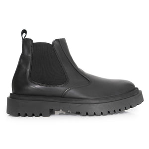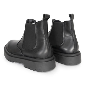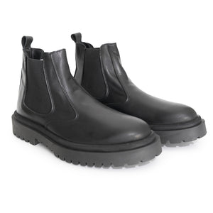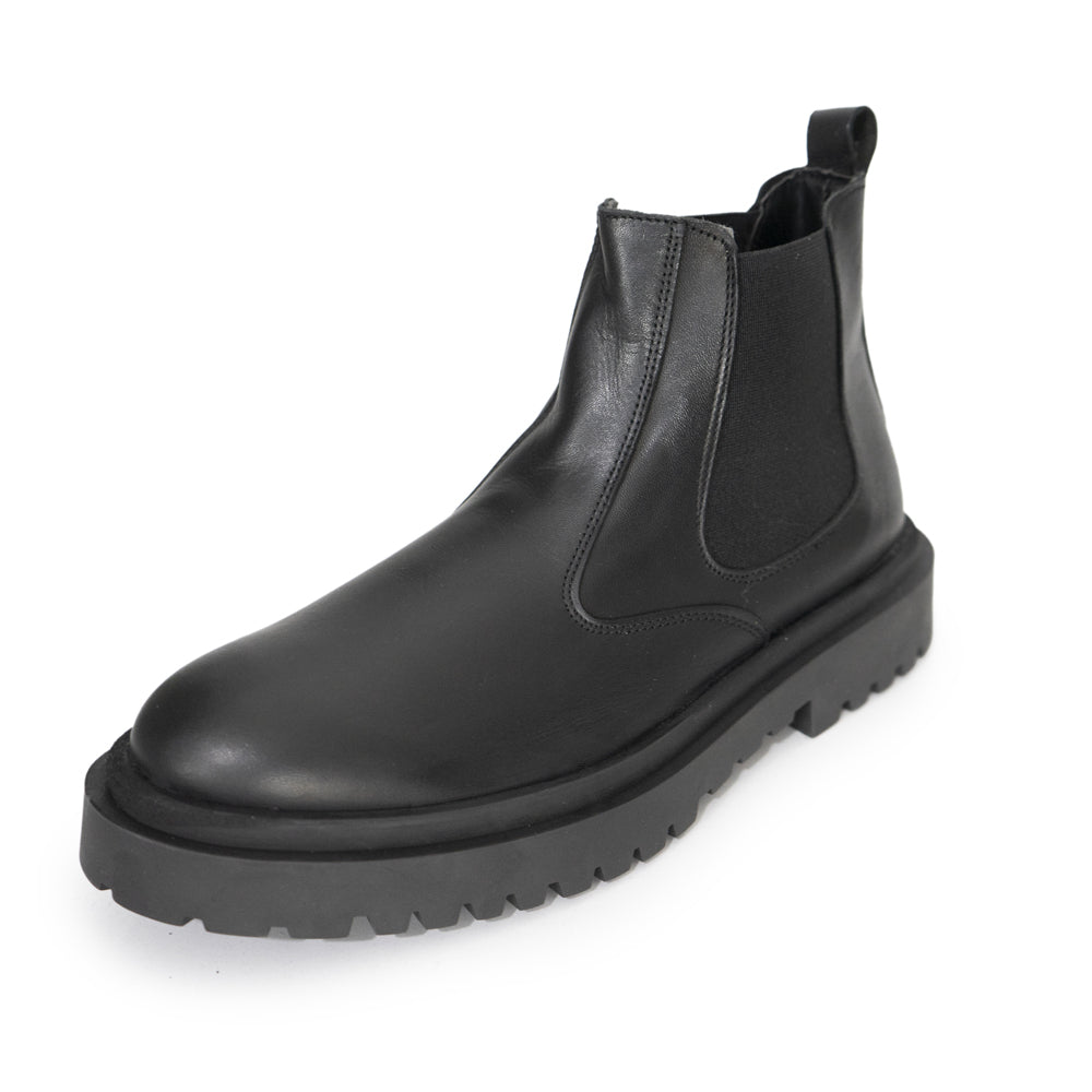 Stivaletti Chelsea attillati e alti fino alla caviglia con un pannello laterale elastico prodotti in Italia. La linguatta posteriore che li caratterizza, consente di tirare lo stivale quando lo si indossa. In pelle, con una super suola in gomma COMFORT!
