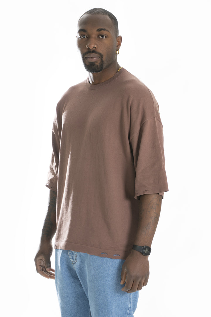 T-Shirt Uomo Manica 3/4 Over Size Girocollo con rotture Art. Ts210