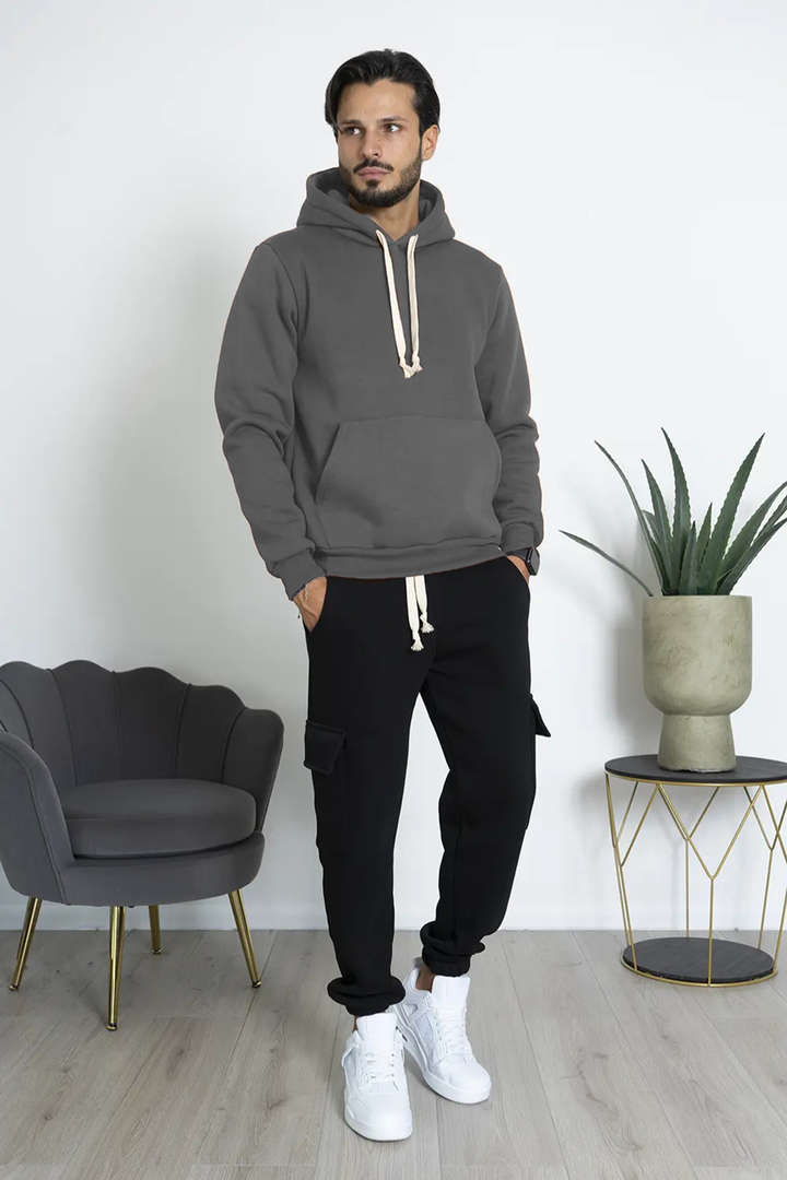 -Dettagli: Tuta completa felpata composta da felpa hoodie con cappuccio regolabile tramite coulisse e pantalone cargo dallo stile moderno. Il tessuto felpato all'interno offre una piacevole sensazione di calore e morbidezza, ideale per affrontare le giornate più fresche con stile. La vestibilità loose fit della felpa, combinata con la praticità delle tasche del pantalone cargo, rende questo set perfetto per un look casual e contemporaneo. Un vero must-have grazie alla sua qualità premium, pensato per garantire comfort e durata.