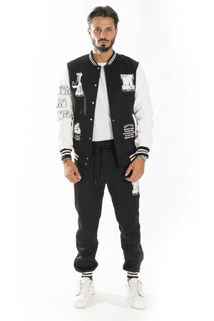 -Dettagli: Giacca con bottoni a pressione e tasche laterali. Lettere in rilievo. Pantaloni con polsini e vita jogger