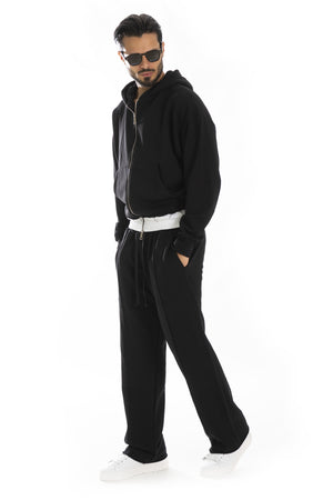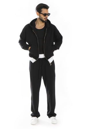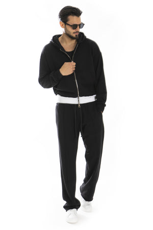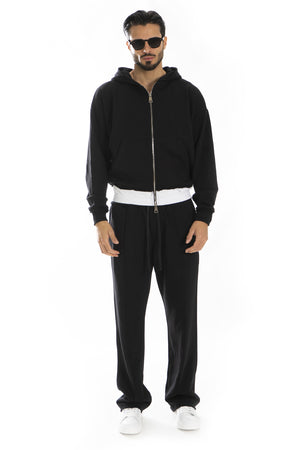 -Dettagli: Felpa con zip, Fondo bianco con doppia vita, pantalone con fondo ampio.