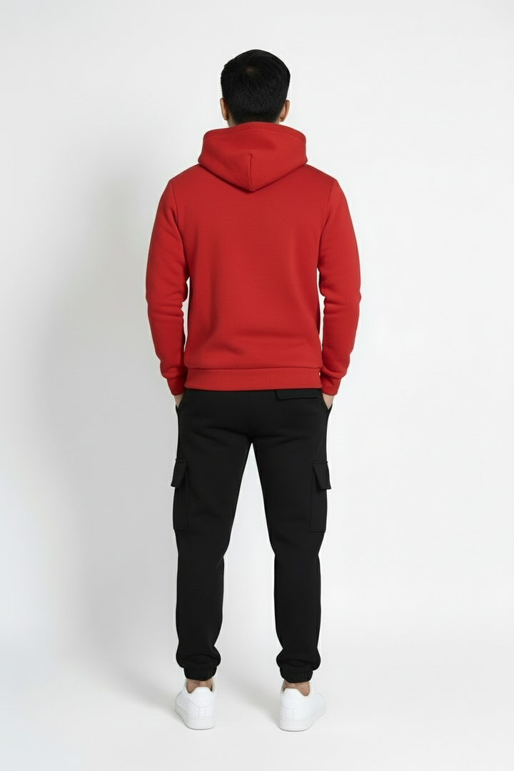 -Completo tuta uomo composto da felpa con cappuccio e pantalone cargo.