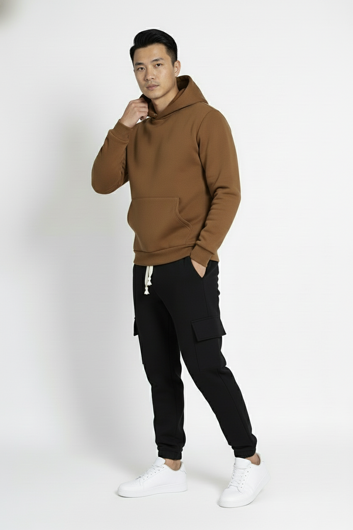 -Completo tuta uomo composto da felpa con cappuccio e pantalone cargo.