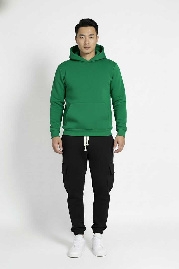-Completo tuta uomo composto da felpa con cappuccio e pantalone cargo.