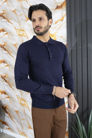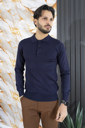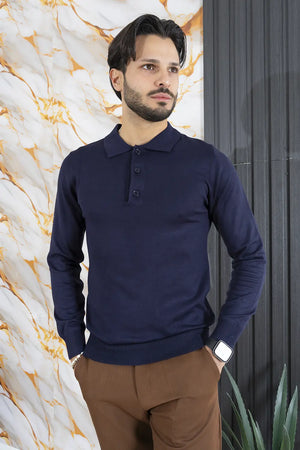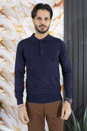 Polo Uomo In Filo Manica Lunga 3 Bottoni Art. Mg134